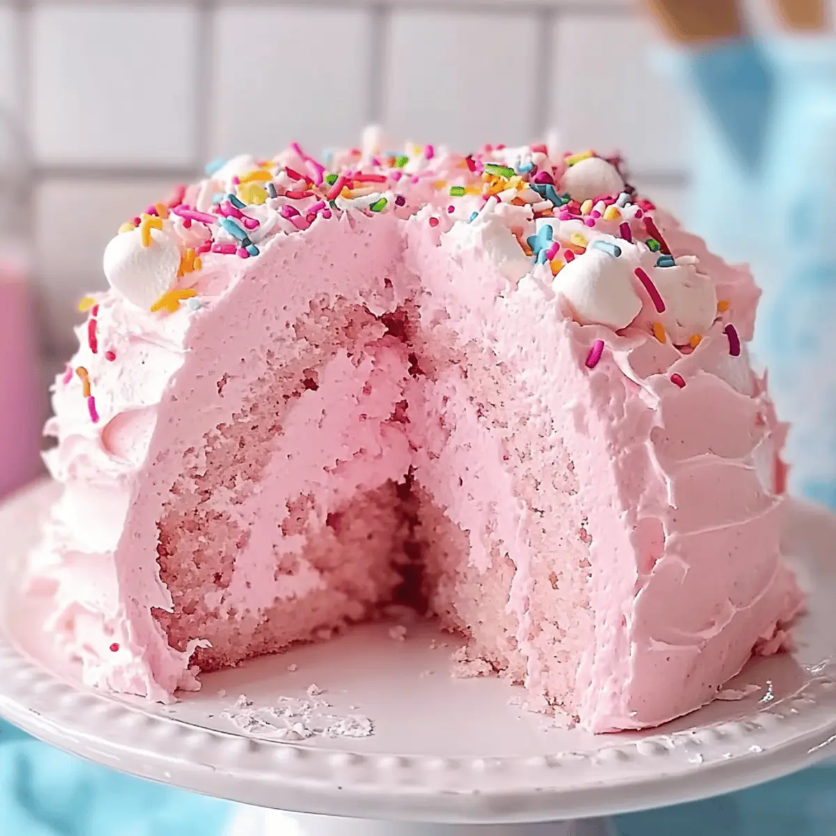 Embrace the charm of this Pink Angel Food Cake as it graces your table, making every gathering feel special!