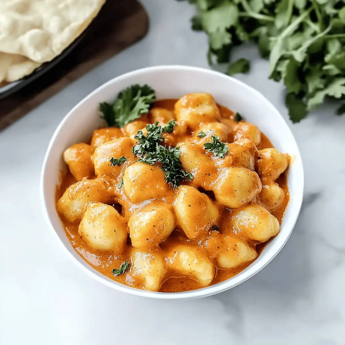 - Serve the Tikka Masala Gnocchi in a serving bowl, optionally garnished with fresh cilantro.